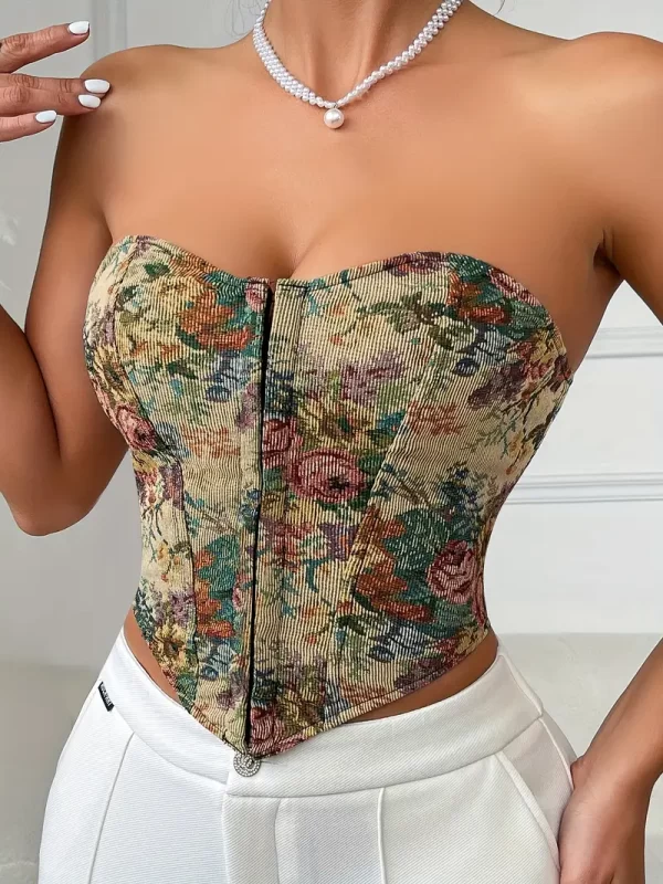 - Vintage Floral Pattern Low-cut Corset With Fishbone Buttons, Exuding A Sexy European And American Style.